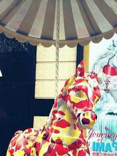It was a hard work with client as they wanted to have something with strong Luxury elements with blend of art, so we use the paint splashes arty elements and these paints turning in to Shanghai city and K11 building and also use diamonds to represent high fasion, Horses was K11 theme at the opening.
